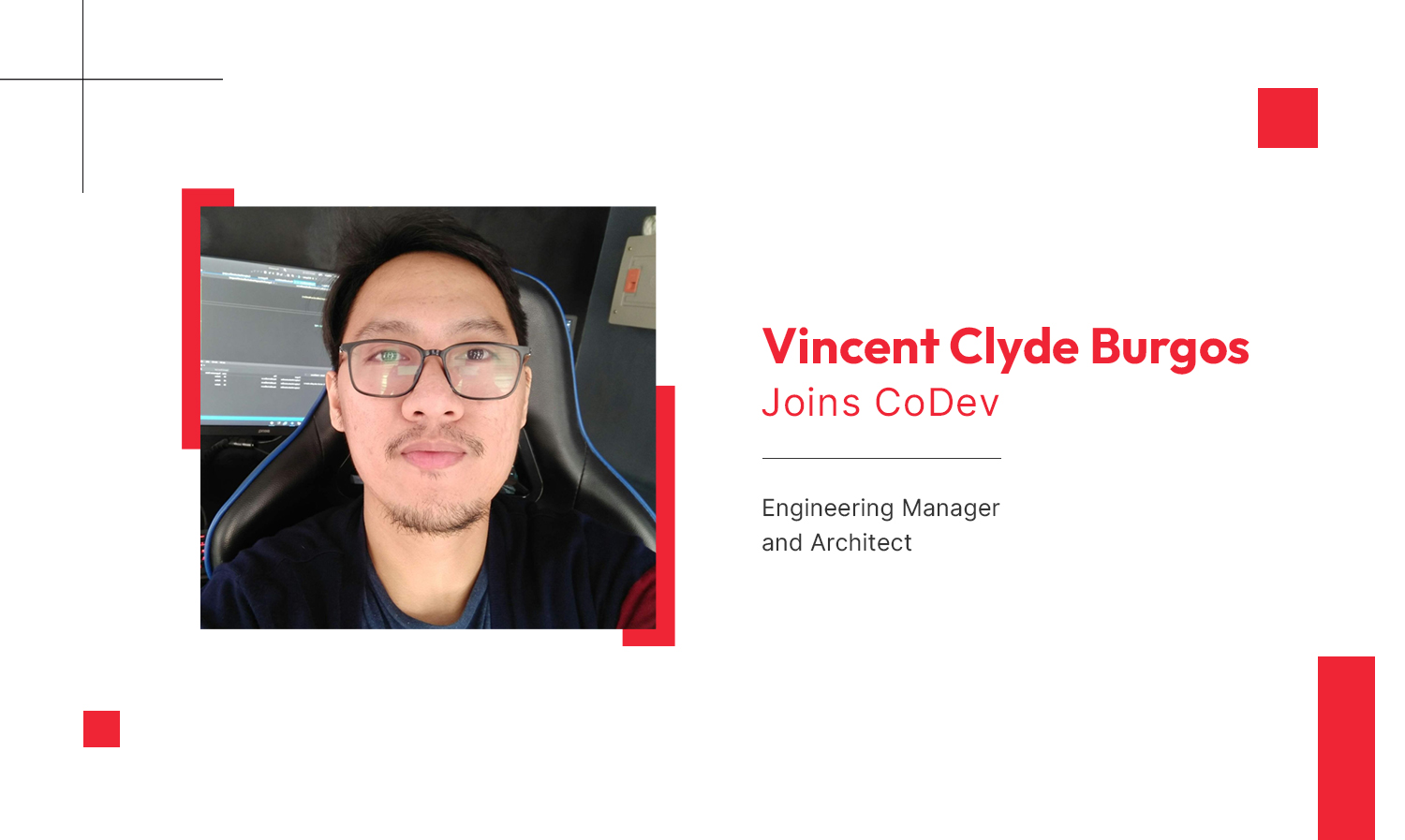 June 1, 2023 No Comments Vincent Clyde Burgos Joins CoDev as Engineering Manager and Chief ArchitectVincent Clyde Burgos Joins CoDev as Engineering Manager and Chief Architect, Bringing… Read More